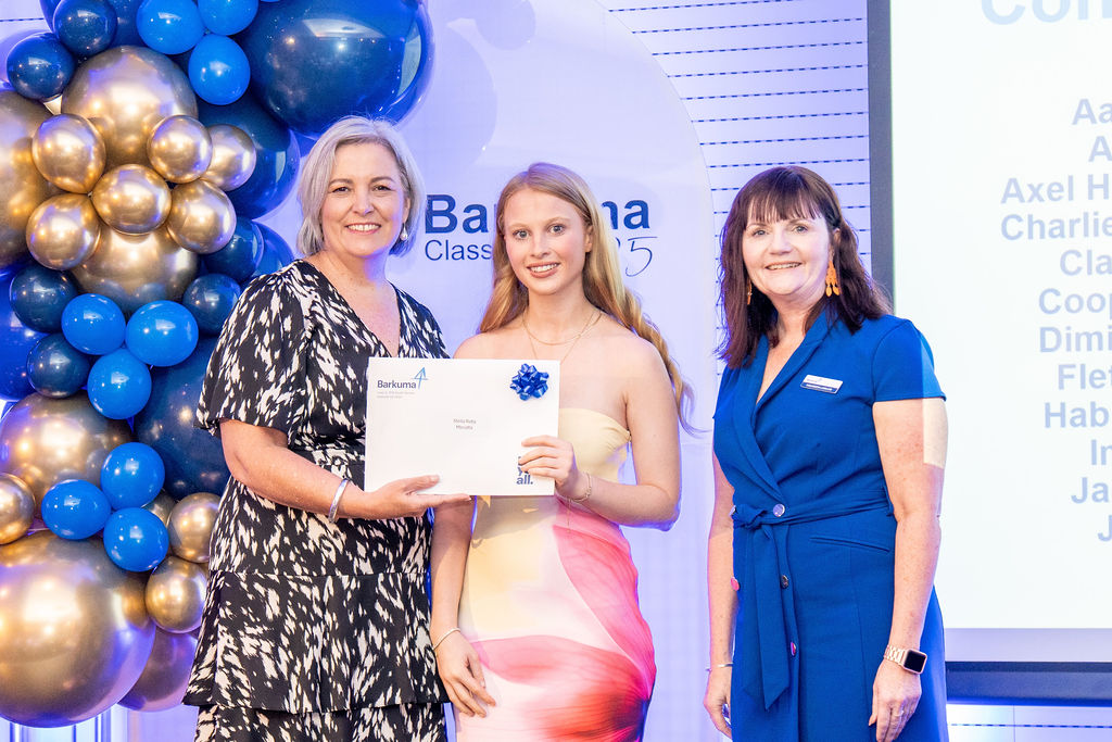 Thirty-six young people marked the completion of a year-long program designed to support their next steps beyond school. Graduates present crossed the stage to receive their certificates from Barkuma Chair Ursula Hickey and Interim CEO Maureen Lawlor, a moment recognising commitment, growth and the courage to take on new challenges.